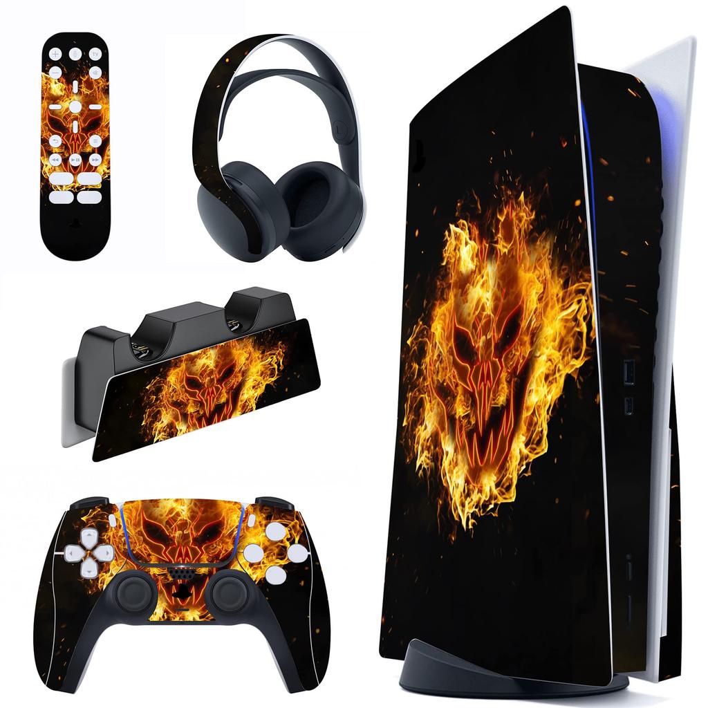 PlayVital PS5 Disc Edition Konsolen-Aufkleber, PS5-Aufkleber für PS5-Controller, Ladestationen, Headsets und Medienfernbedienungen [Feuerdämonen]