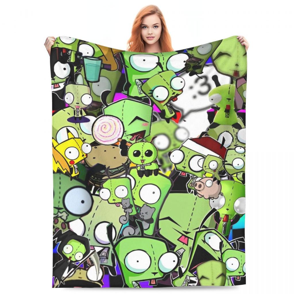 Invader-Zims Wolldecke Cartoon Dunkle Komödie Individuelle Überwurfdecke für Zuhause 200x150cm