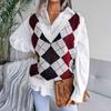 1. KAROMUSTER: Die Damenstrickweste hat ein Karomuster, einen farblich abgesetzten Strickfarbabgleich und ist voller Preppy-Stil.