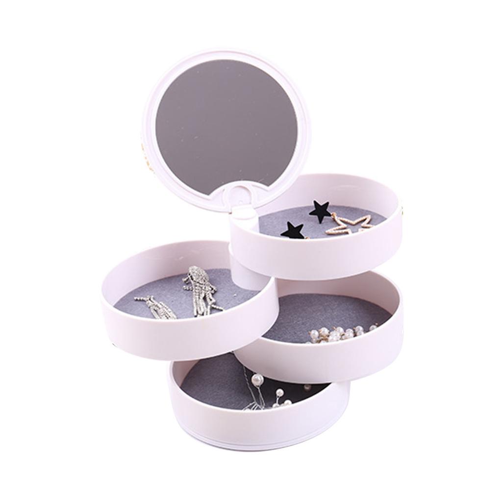 Tragbare Schmuckschatulle Reise Schmuckkoffer 4 Schichten Drehbarer Ohrring Aufbewahrungsorganizer mit Spiegel Weiß