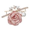 Brosche Rosenmuster Perle Strasslegierung Baumwolle Exquisite Retro Brosche Anstecknadel für Mantel Anzug Schal Helllila