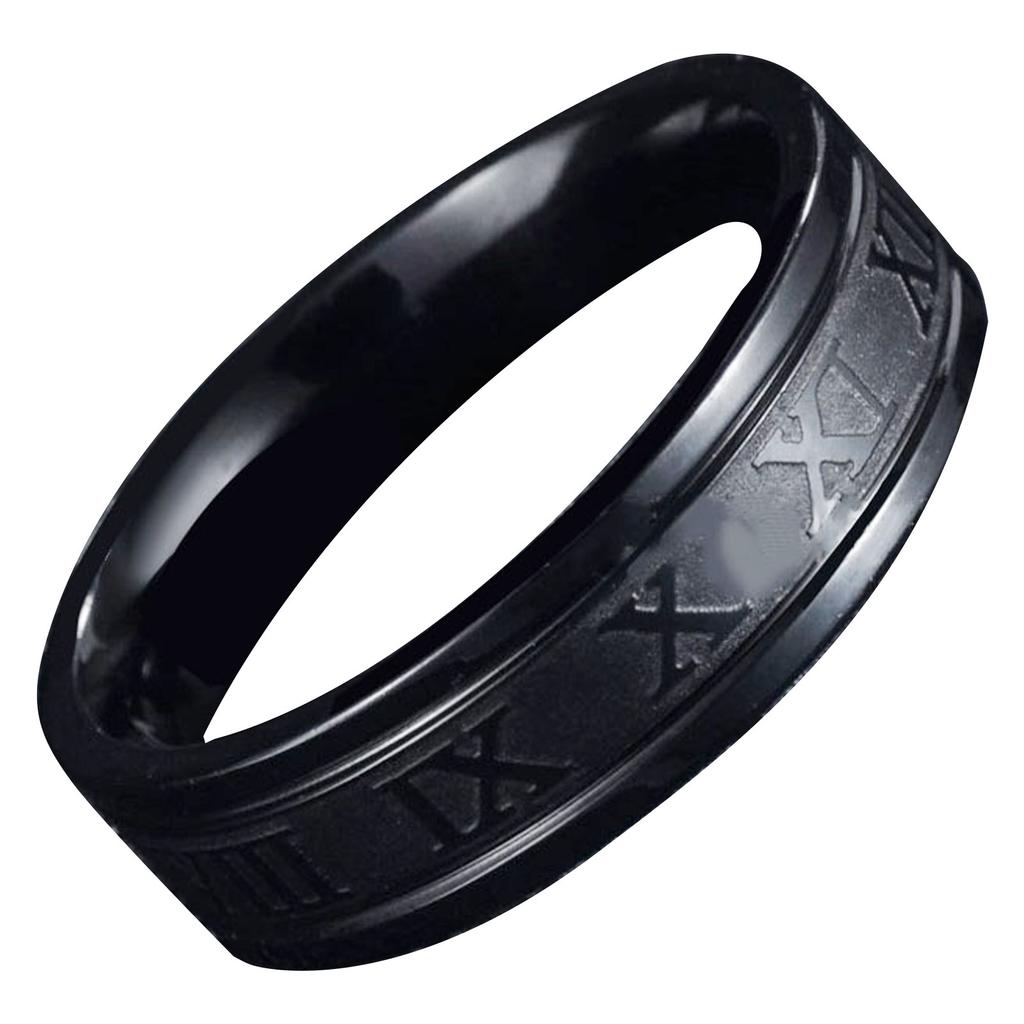 Schwarzer Titanstahlring Gefertigt Mode Schlichter Ziffernring für Männer Täglicher Gebrauch 0,7 Zoll Durchmesser