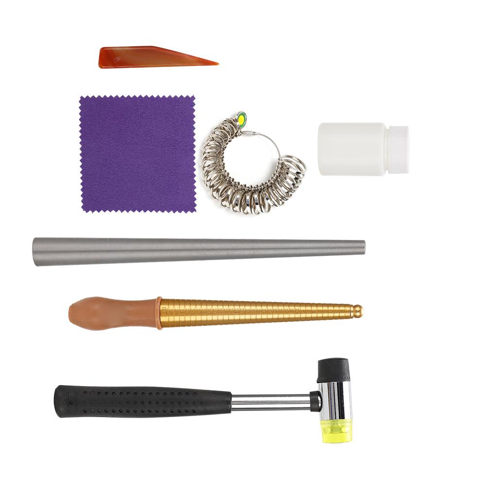 7-teiliges Set Schmuckwaschflüssigkeit Polierklinge Fingerring-Dornstock Ringmaß Schmuckpolier-Herstellungszubehör