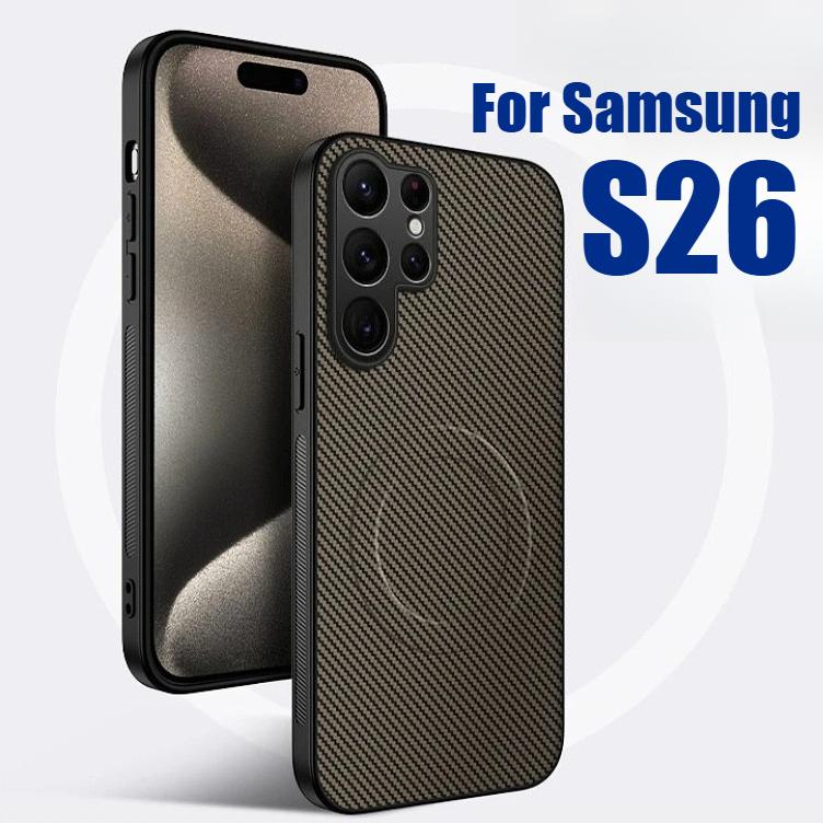 Business Karbonfaser für Magsafe Hülle für Samsung Galaxy S26 Ultra S26 Pro S25 Edge Plus S24 FE S23 S22 S21 S20 Kabelloses Laden Kameraschutzhülle