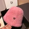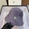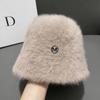 Korea Designer M Bucket Hat Woman Warm Plush Angola Rabbit Fur Hat Lady Autumn Winter Ins Fashion Basin Hat Retro Fluffy Panama