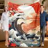 RED SUN ,FLYING CRANES AND SEA WAVES IN BLACK Throw Blanket Fashion Sofas wednesday sofa bed Thin Blankets