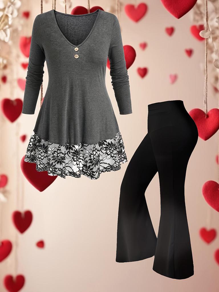 Damenmode Strickoberteil & Schlaghose Zweiteiliges Set für den Herbst