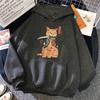 Japanische Zeichentrickfilme Katze Ukiyo E Druck Damen Hoodie Hip Hop Fleece Pullover Kreativität Rundhals Kleidung Fleece Locker Damen Kapuzenpullover