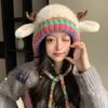Plush Fur Knitted Deer Antler Hat Windproof Festival Christmas Antler Hat New Ear Flap Hat Outdoor