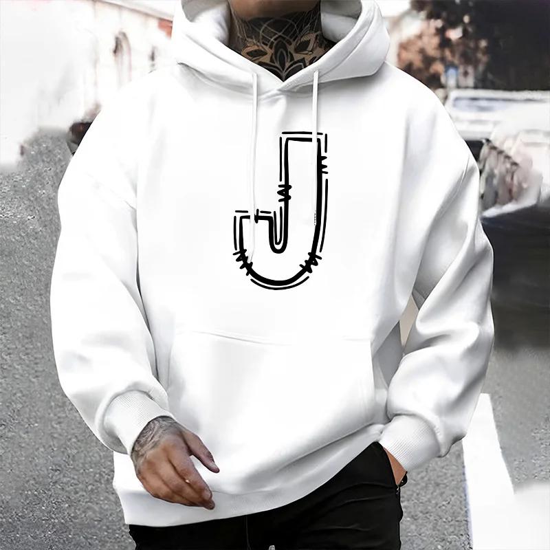 J Buchstabe Bedruckte Herren Kapuzenpullover Herbst Winter Lässige Sportbekleidung Jogging Hoodies Männlich Outdoor Komfort Warmes Überziehshirt