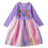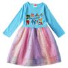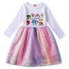 9191 Kinder Mädchen Steal a Brainrot 67 Six Seven Print Langarm Baumwolle Lässig Pailletten Regenbogen Kleid