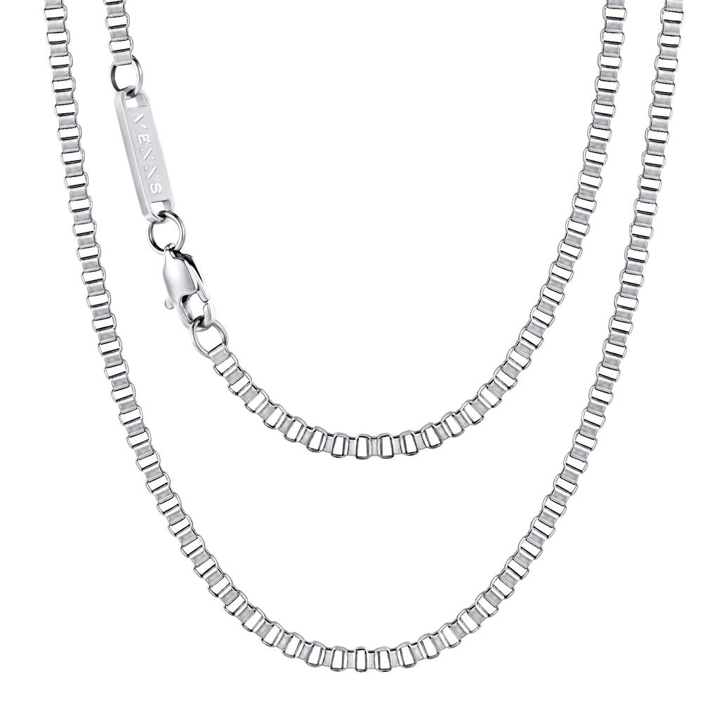 VEXS Venetian Chain Necklace for Men, 2mm Wide, 18K Gold Plated Box Chain, Unisex, 45cm, 50cm, 55cm, 60cm, 65cm (2mm White Gold Square, 55.00)