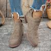 Stiefeletten für Damen, Damen Casual Kleid Niedrig Absatz Stiefeletten Kurz Klobiger Blockabsatz Perforierte Seite V-Ausschnitt Westernstiefeletten Ausschnittschuhe