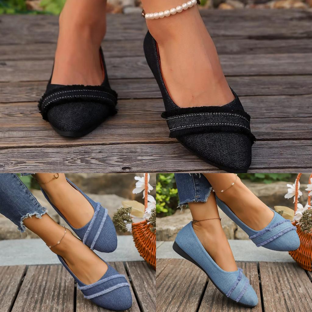 Damen Denim Freizeitschuhe Flache Laufschuhe Runde Zehenpartie Klobiger Block Niedrige Absätze Atmungsaktiv Bequem Widerstandsfähig Trendig Schick Outdoor Reise Alltagsschuhe