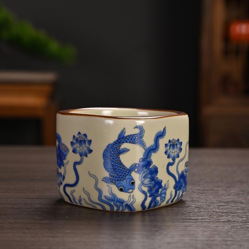 Exquisite chinesische Ru-Ofen-Teetassen, handgefertigte Keramik-Tassen mit Krakelee-Glasur, verwendet für Teeverkostung, Zen-Tee, Meistertasse und Gästetasse