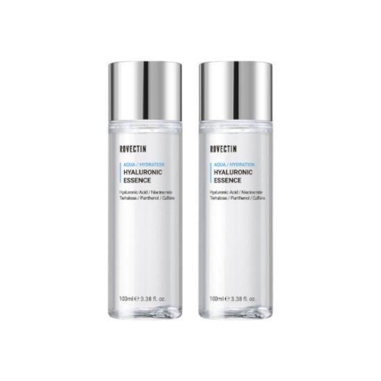 Hydrate deeply and continuously with ROVECTIN Aqua Hyaluronic Moisturizing Essence Double Set — a refreshing moisture essence that keeps your skin plump, balanced, and comfortable all day long.