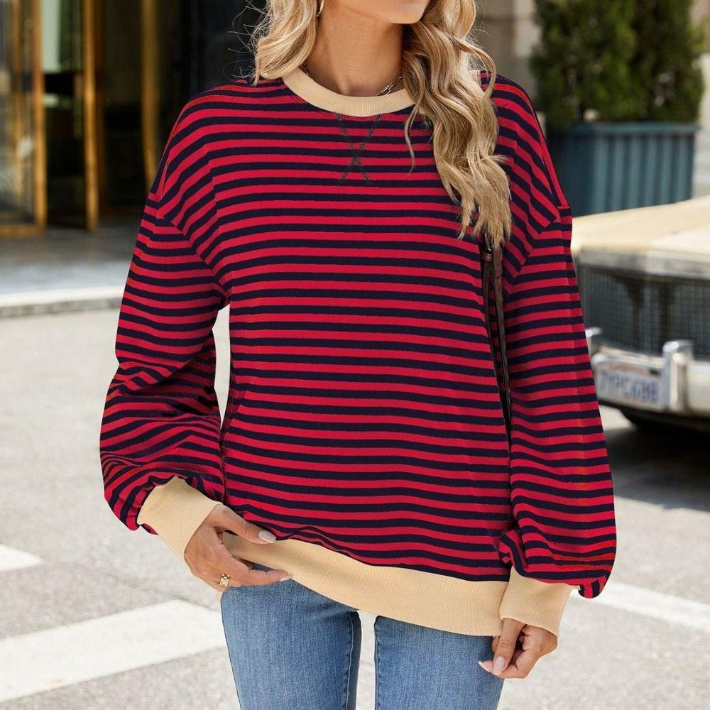 Crew Neck Striped Oversized Sweatshirt Patchwork Stripe Bottoming Shirts Female
