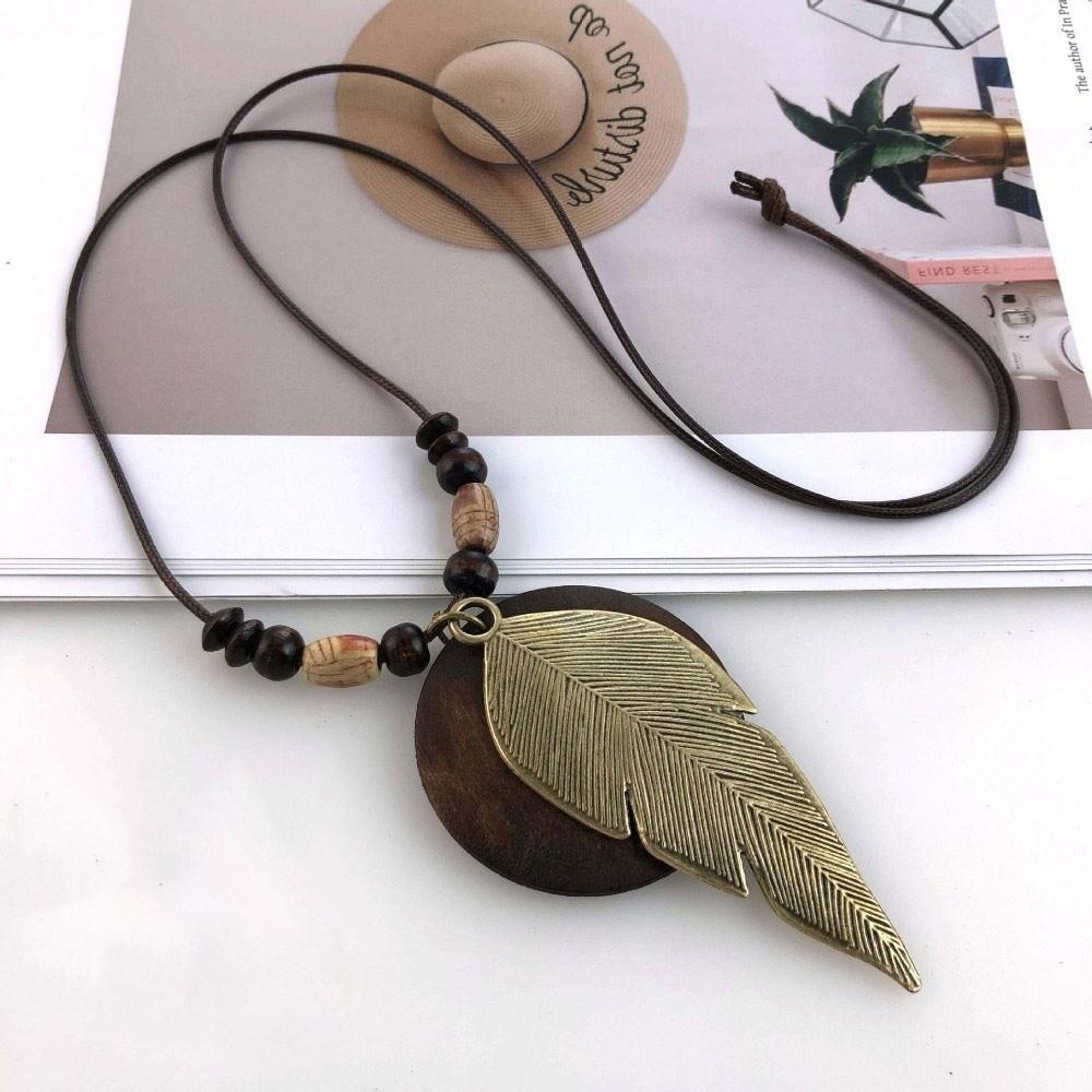 Boho Sweater Chain Hollow Leaves Clothing Pendant Vintage Necklace Gifts