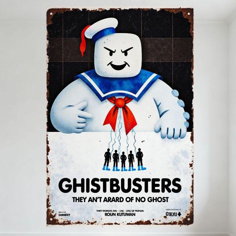 Ghostbusters Stay Puft Marshmallow Man Vintage Blechschild Abgenutzt Retro Filmplakat Wandplakette Home Bar Café Man Cave D