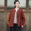 Frauen Chinesischen Stil Shirts Einfarbig Langarm Taste Lose Herbst Vintage Baumwolle Leinen Frauen Shirts Tops