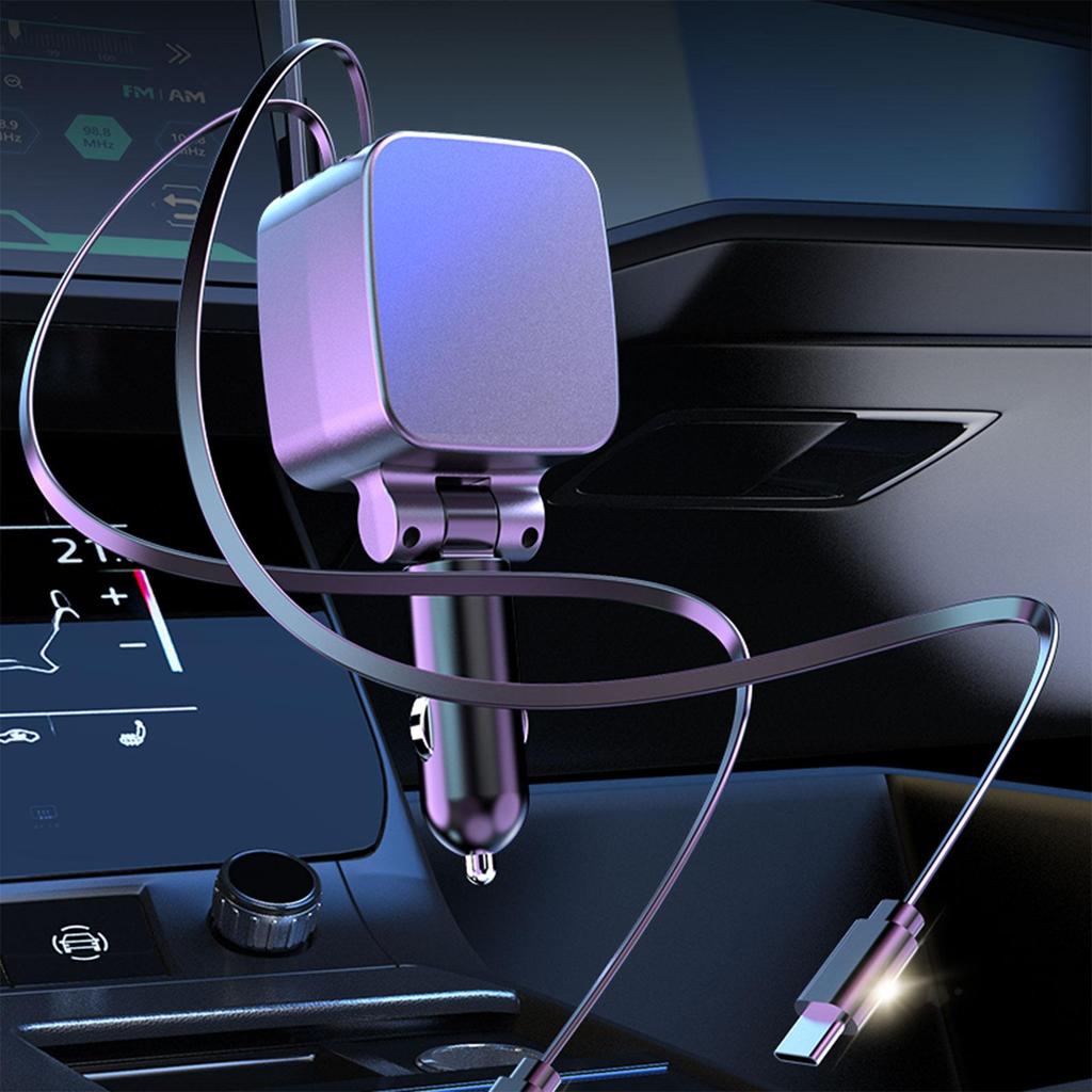 Car Charger With Retractable Cables Fast Charging 2 USB Ports Auto Supplies With Starlight Car Charging Port For Daily Commute