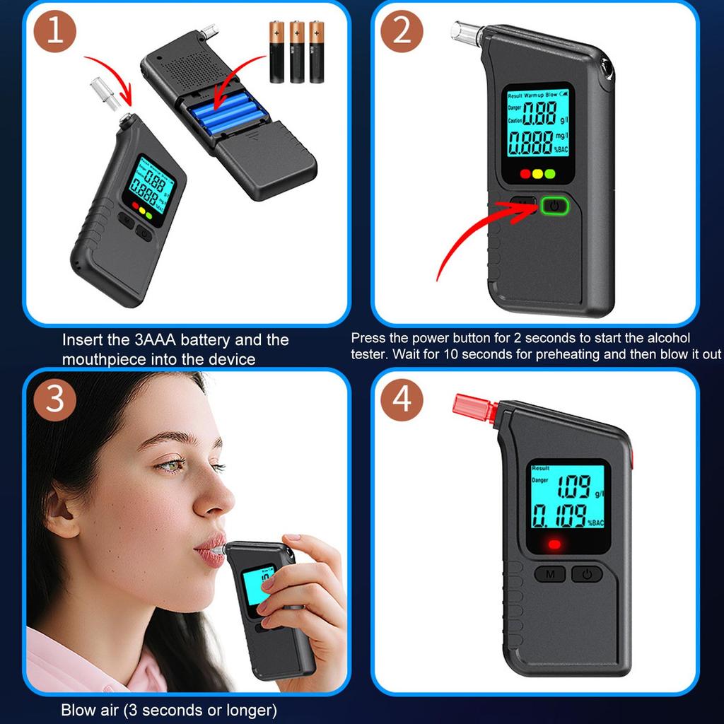 Portable Breathalyzer Tester Home Breathalyzer For Alcohol LED Display High Accuracy Detector For Safety Driving Road Trip