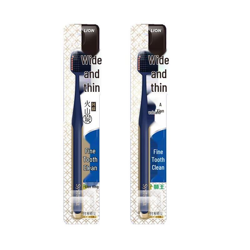 Lion Fine Tooth Clean Volcanic Charcoal Soft Toothbrush - 2 Pack