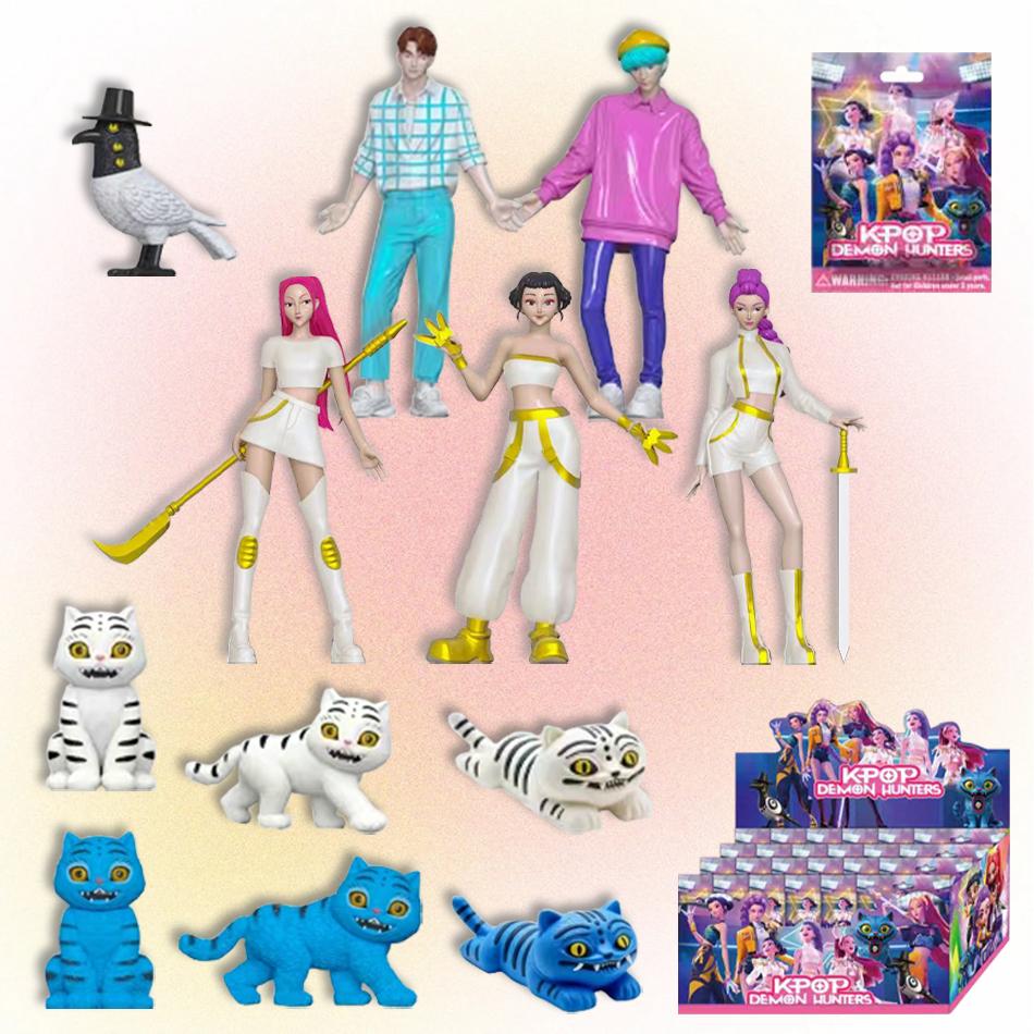 24 Stück Anime Kpop Dämonenjäger Box Tiger Rumi Mira Zoey Figur Actionfigur Kits PVC Modell Spielzeug Passende Karten Großhandel Geschenk