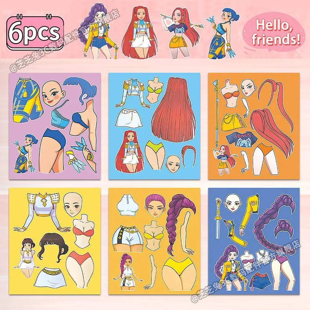 6 Blatt Anime Kpop Dämonenjäger Puzzle Aufkleber Kawaii Mach ein Gesicht Buchaufkleber Niedlicher Cartoon DIY Lustiger Aufkleber Spielzeug Kindergeschenk