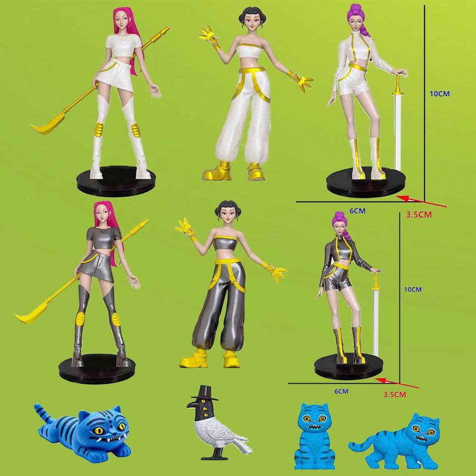 7pcs Kpop Demon Hunters Action Figures Set Derpy Tiger Rumi Mira Zoey Sussy Dolls Collectible Figurines for Fans Birthday