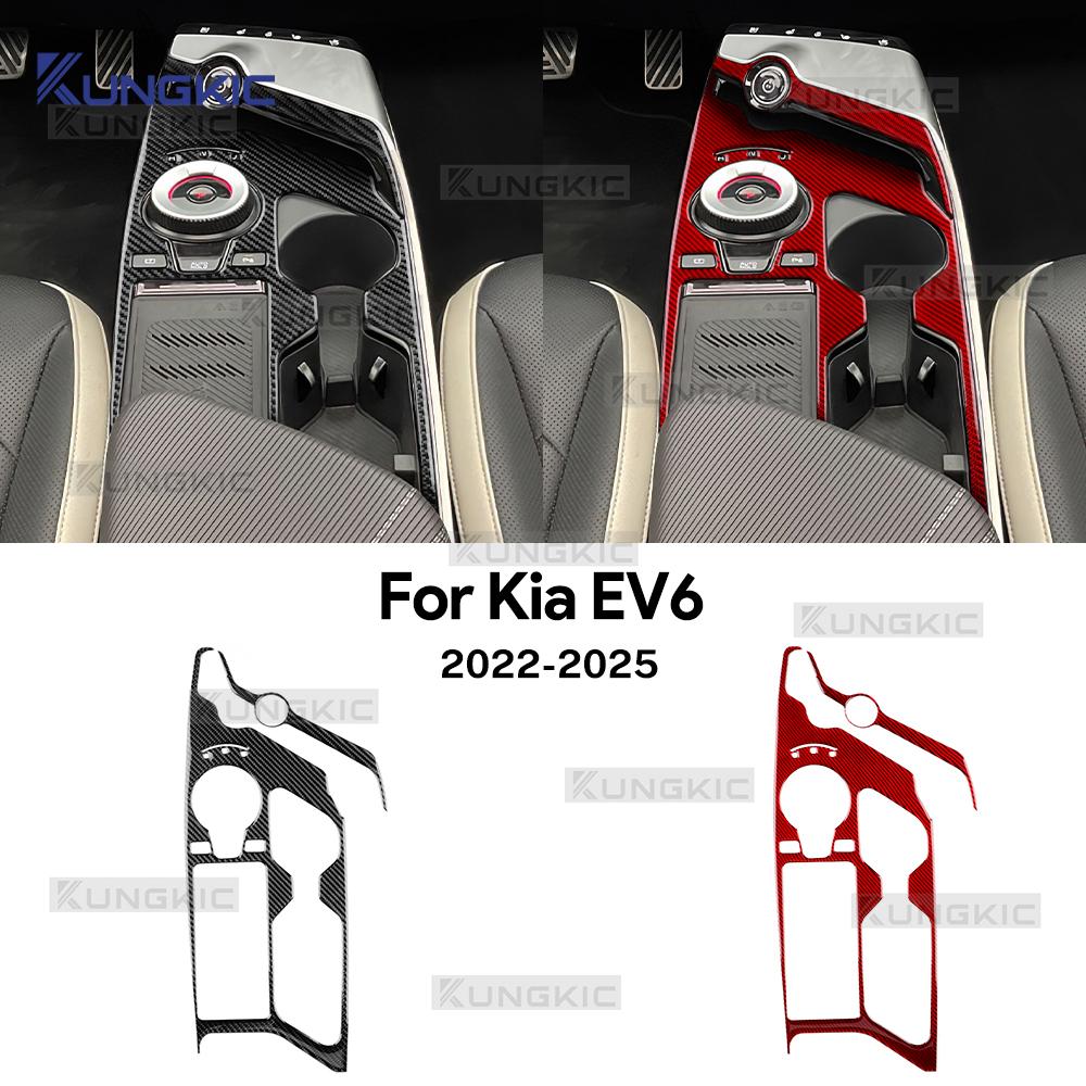 Real Soft Carbon Fiber Sticker For Kia EV6 GT EV 2022 2023 2024 2025 LHD RHD Car Gear Shift Panel Interior Trim Accessories