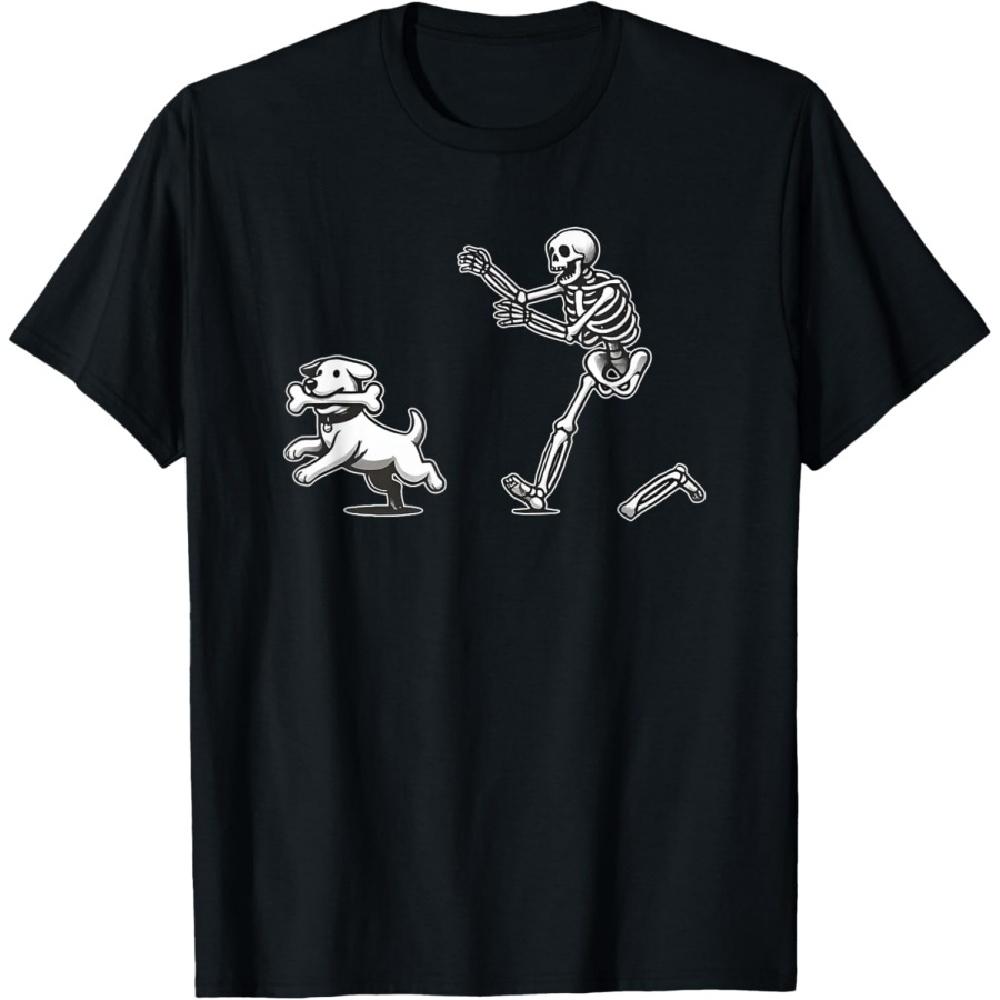 Halloween Dog, Funny Skeleton, Skeleton Chasing Dog Men Women T-Shirt