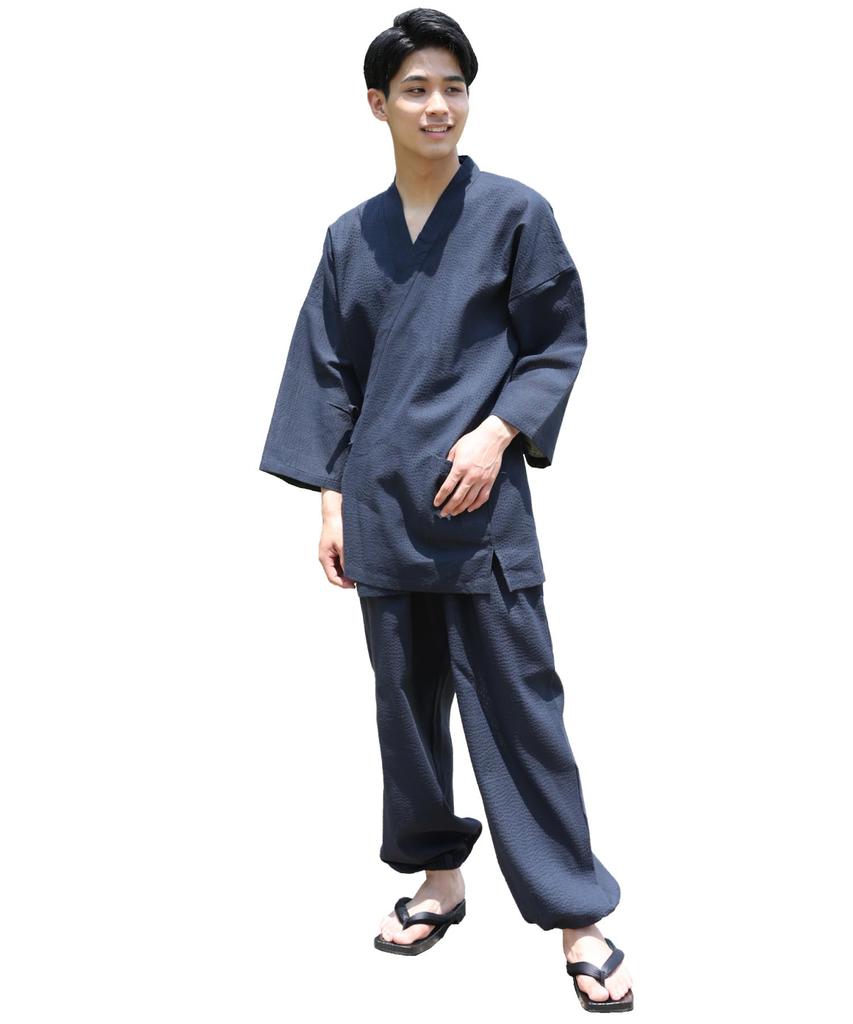 ON NISHIKI Men's 100% Cotton Samue Top and Bottom Set, Shijira Weave, Cool (2: Dark Navy/M/0810)