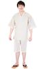 Aiai Men's Long Jinbei with Wide Length and 3/4-Length Pants, Made in Japan with a Smooth, Non-Stick Shijira Weave, 100% Cotton (Size M, Beige)