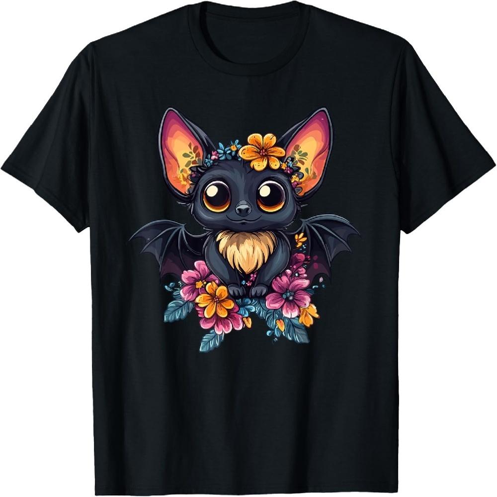Entzückendes Fledermaus mit Blumen T-Shirt
