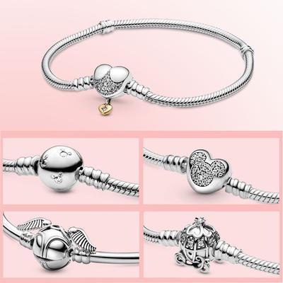 Stilvolles und romantisches Pandora Herzverschluss-Charm-Armband mit Schlangenkette und Box
