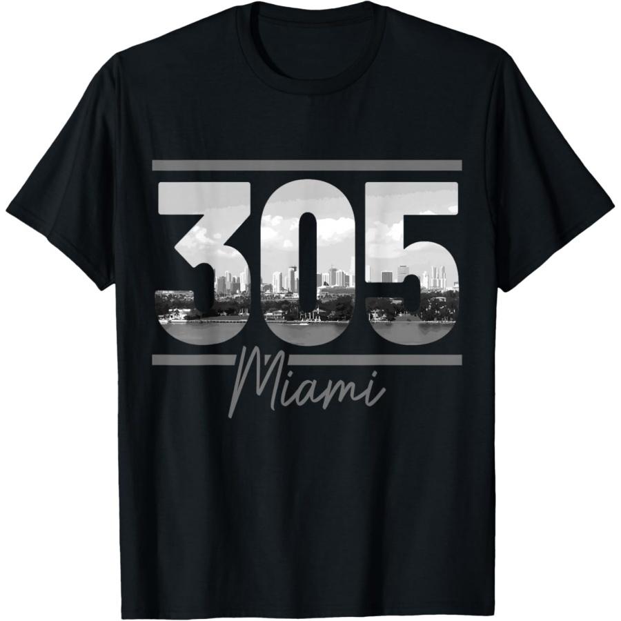 Miami 305 Area Code Skyline Florida Vintage T-Shirt