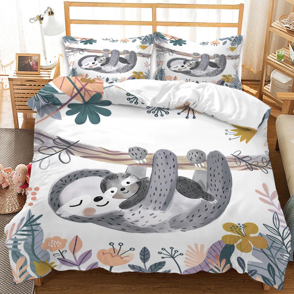 Three-Piece Cartoon Animal Panda Sloth Quilt Cover Digital Printing Bedding