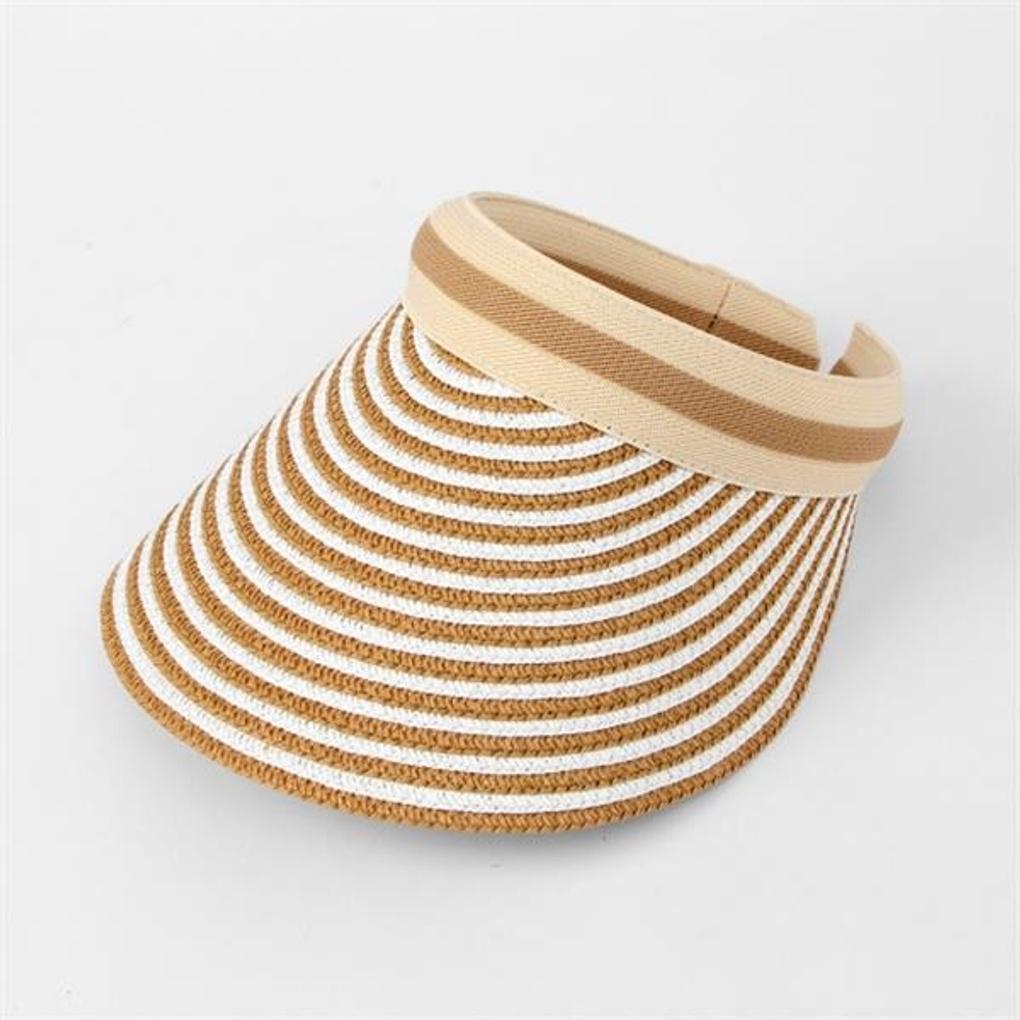 Striped Sun Cap (Brown) / Women's Summer Sun Cap