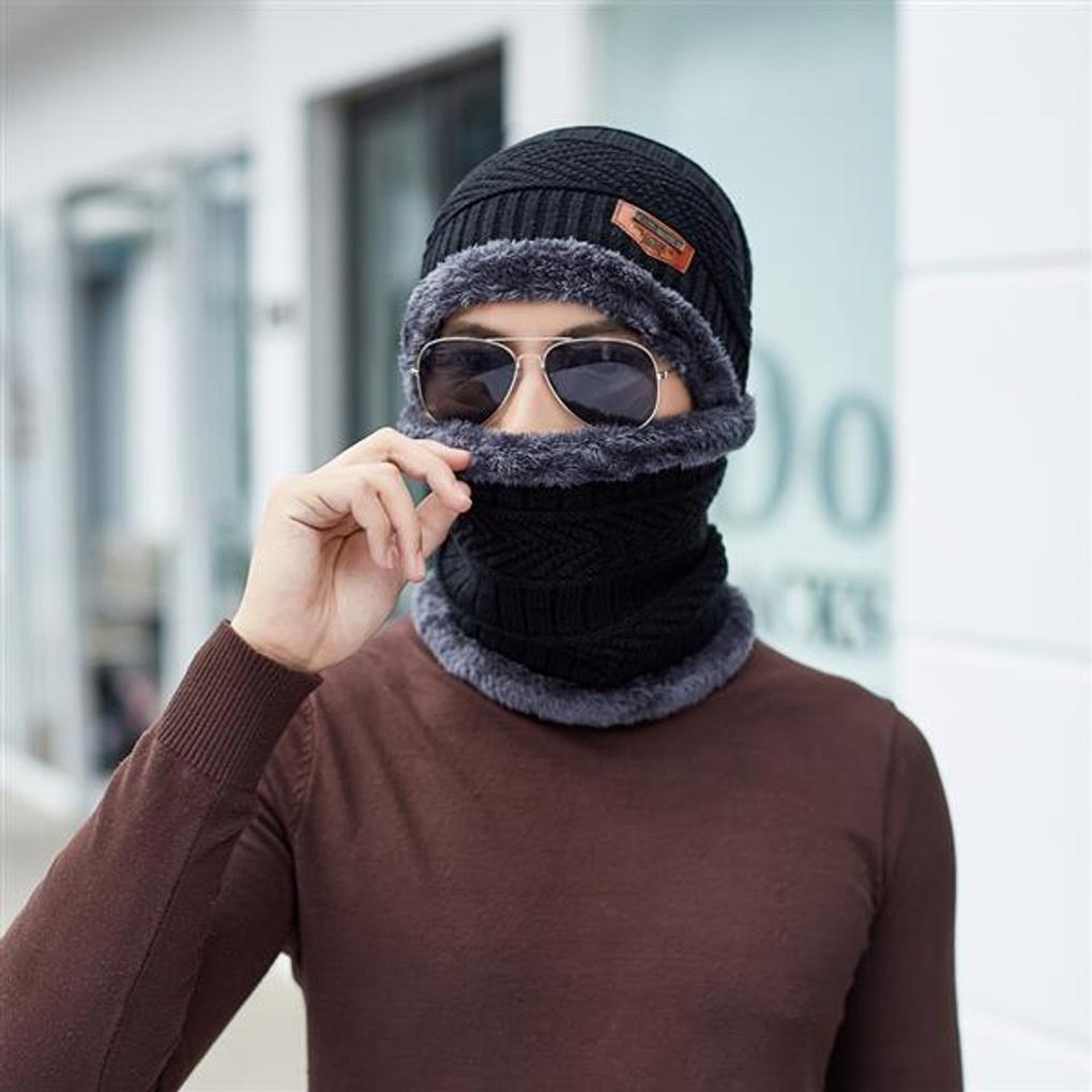 Neckwarmer Beanie Set (Black)/Fur Hat Beanie Winter Hat