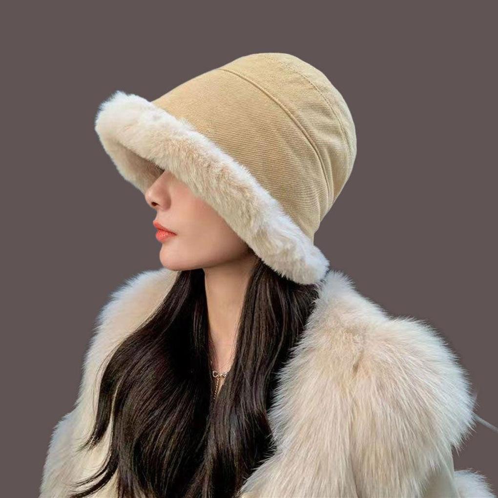 Winter warm daily bucket hat with fur collar
