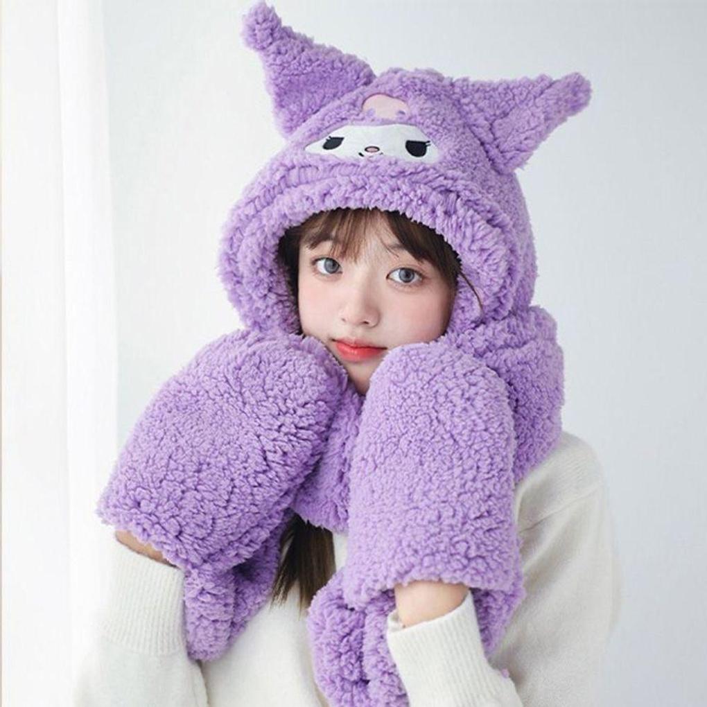 Kuromi Poguri Kapuzenschal Handschuhe Set 1P Winter