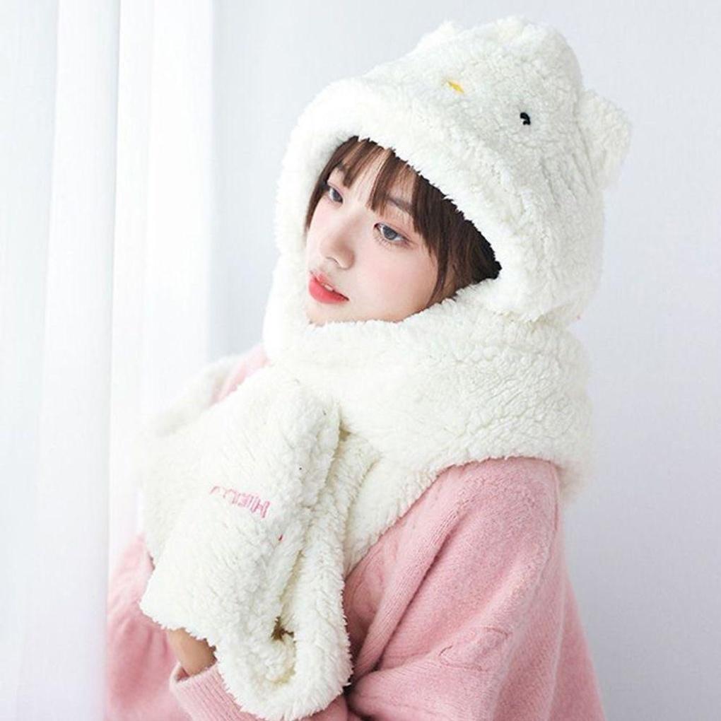 Winter Hello Kitty Poggle Hooded Scarf Gloves Set 1P