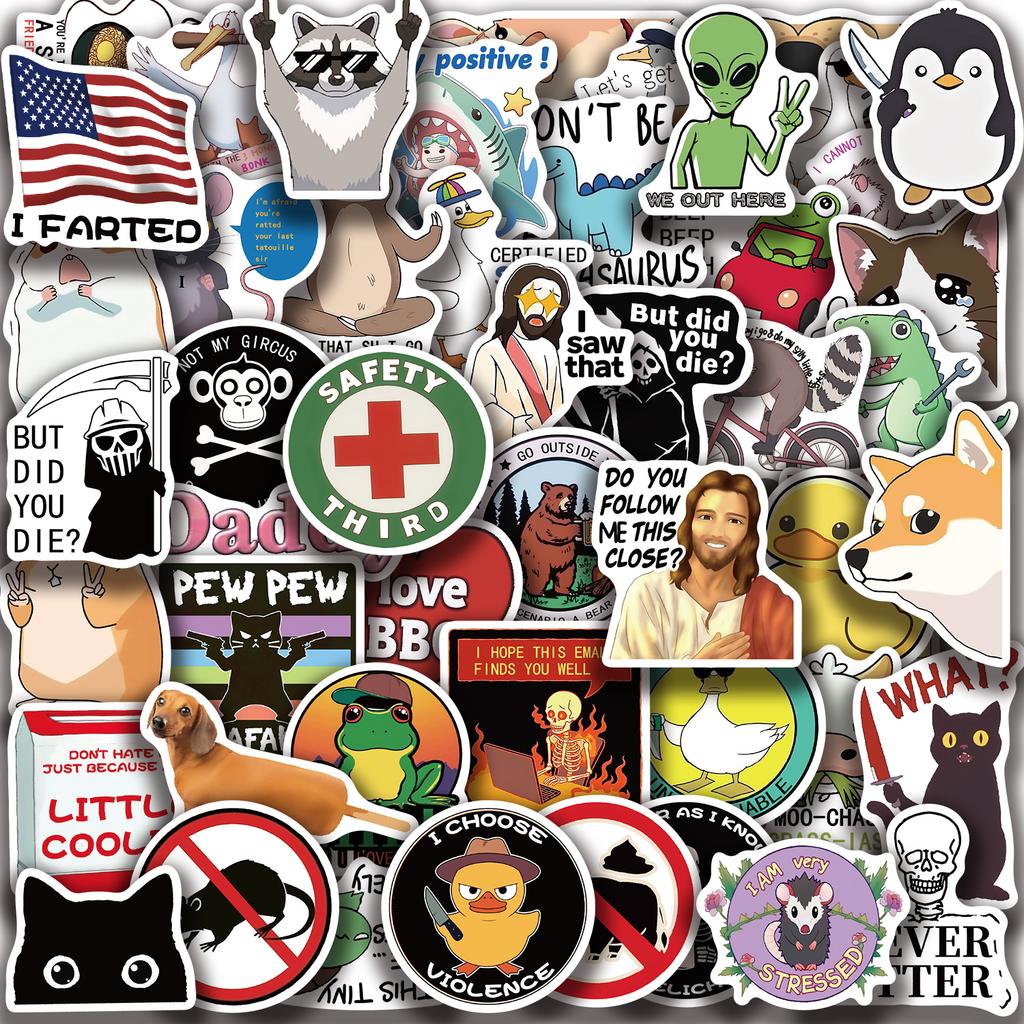 50PCS Adult Fun Stickers Painted Graffiti Text Animal Logo Cup Laptop Cell Phone Luggage Decoration Waterproof Stickers