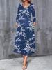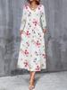 2025 Autumn and Winter New Women Casual Fashion Dress Autumn 3D Flower Print Long Sleeve V-Neck A-Line Dresses