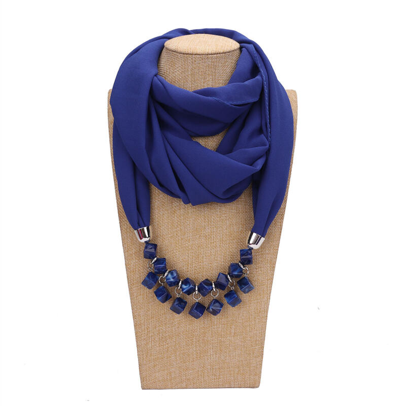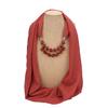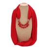 Bold Red Chiffon Scarf Necklace with Cubic Beads – Fashionable Infinity Scarf for Women, Statement Jewelry Accessory