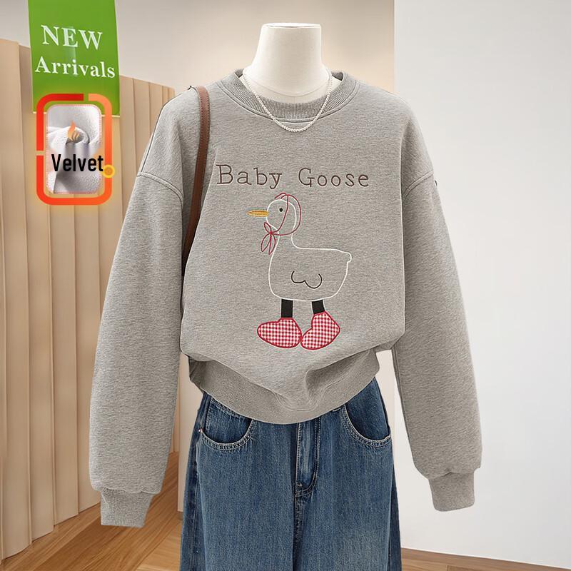 Damenmode Cartoon Ente Besticktes Plüsch-Sweatshirt