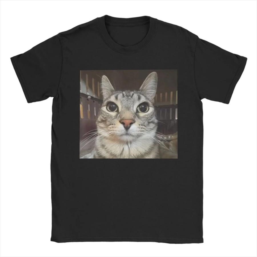 Lustiges Starrender Katzen-Meme Herren T-Shirts Vintage T-Shirts Kurzarm Rundhals T-Shirts Reine Baumwolle Partykleidung