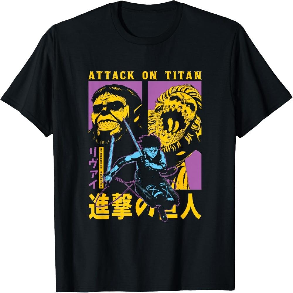 Attack on Titan Staffel 4 Split Titan Gesichter Angriffspose Anime T-Shirt