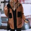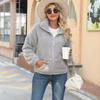 GMXIA Autumn Plush Women's Knitted Long-sleeved, Elegant Loose Stand-up Collar Pocket Zipper Cardigan